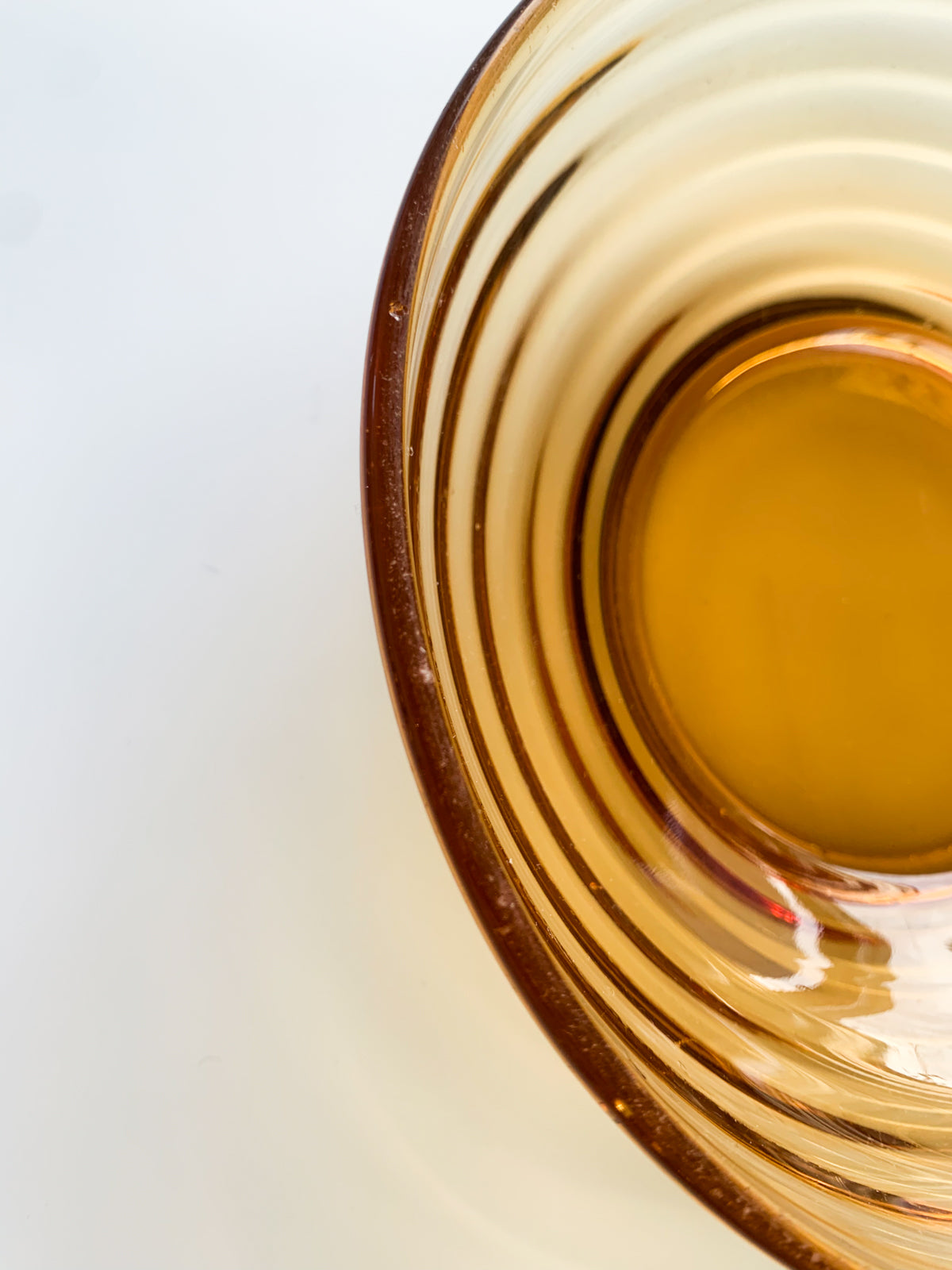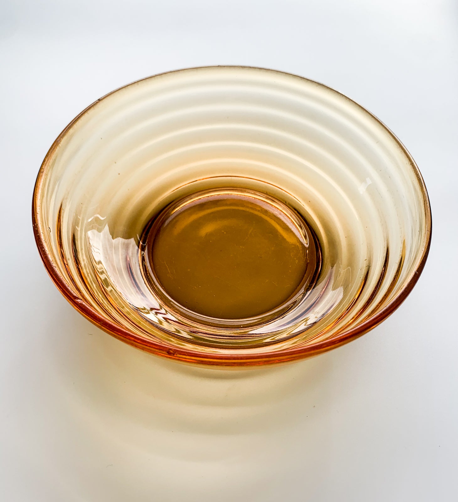 Rare amber glass bowl from the Bölgeblick series designed by Aino Aalto. Produced in Finland in the 1930s, this piece reflects the origins of modern Nordic glass design and early minimalist tableware.