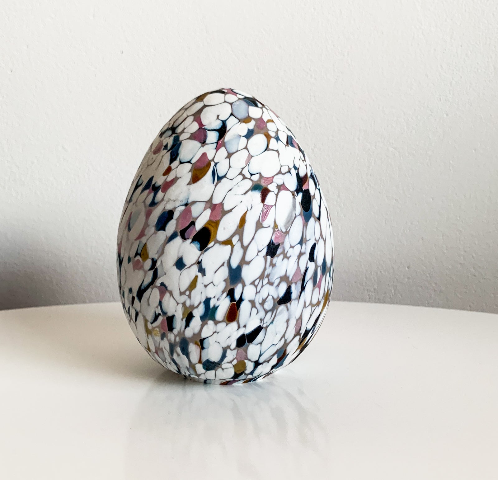 This sculptural glass egg was designed by Monica Backström as part of her long-running exploration of closed organic forms. This version places emphasis on surface rhythm and chromatic interaction rather than physical mass.