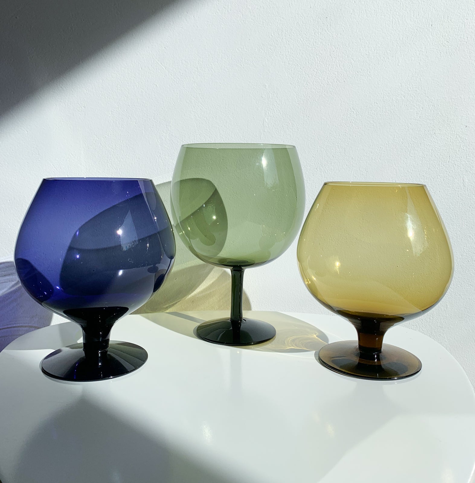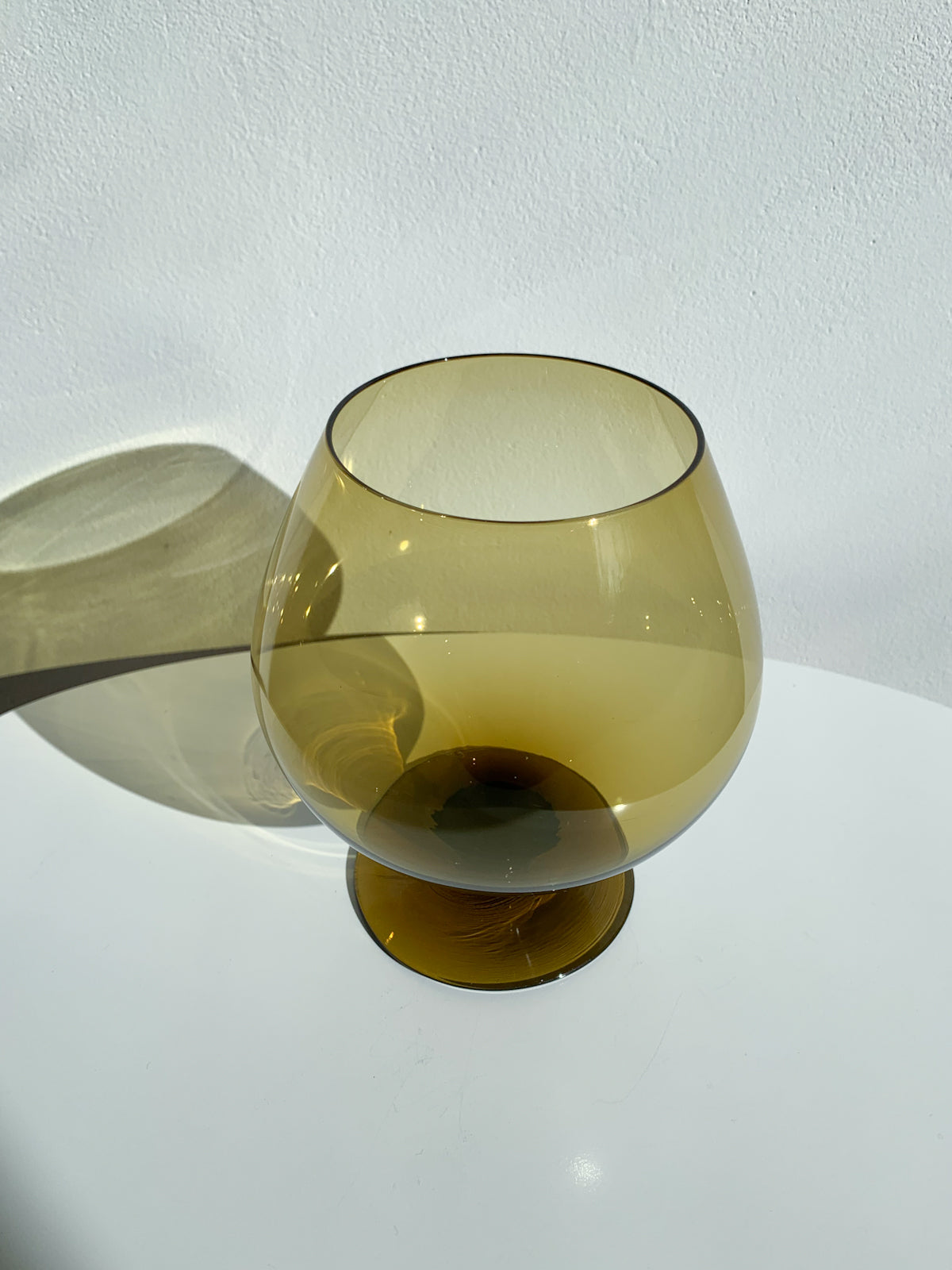 Vintage vase and aroma glass, model 1131, designed by Finnish designer Saara Hopea for Nuutajärvi glassworks in the 1950s–1960s. The piece is crafted in transparent green amber glass, with a smooth surface and refined proportions.