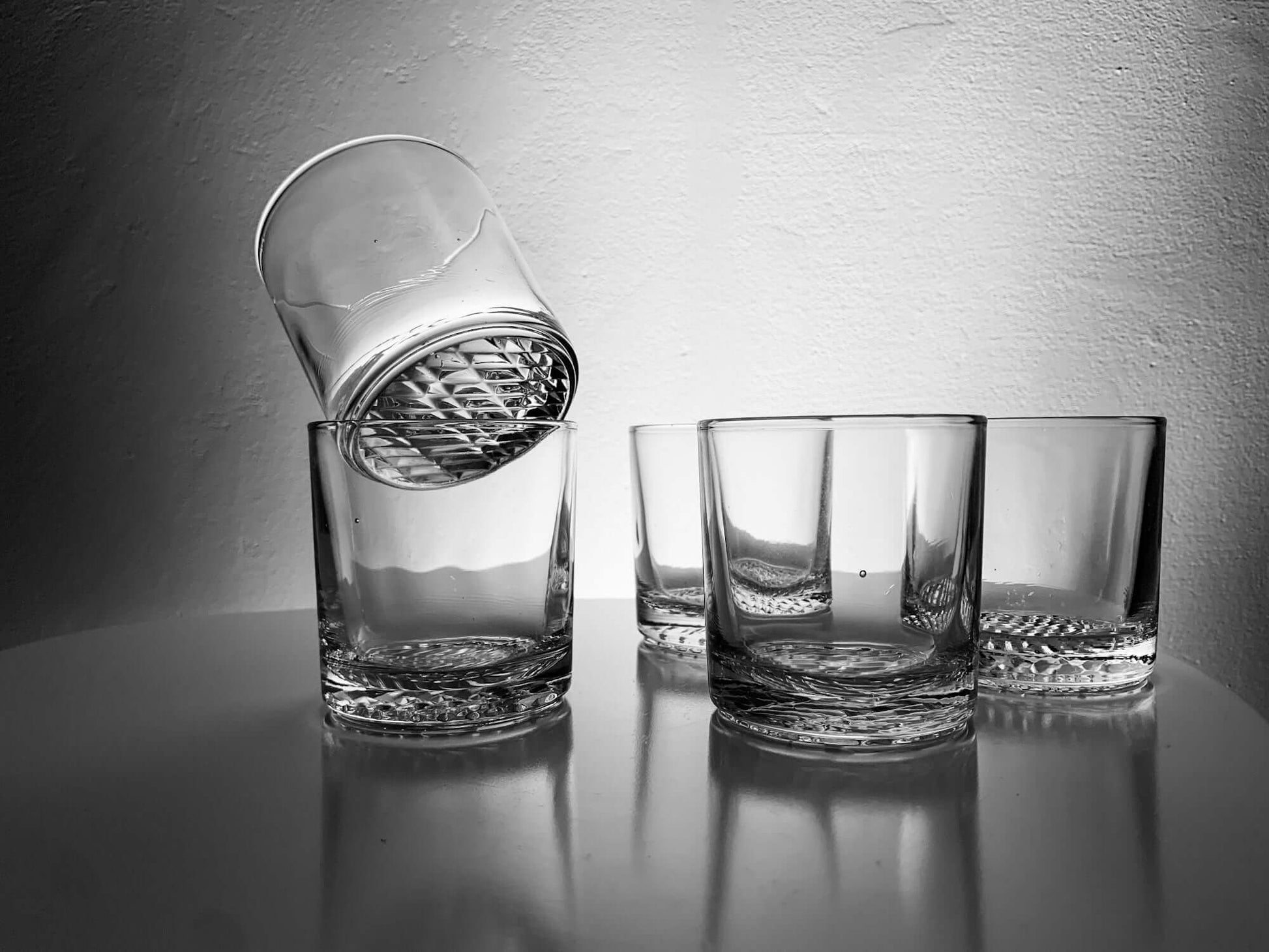 Set of 5 water glasses from iconic modernist series Flindari by Finnish designer Nanny Still. Substantial ones.